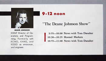 As the "heavy production" or "newsic" news format was adapted by KWMT in early 1961, this show opener was cut for each Jock to use following the news. The talent on the clip is Paul Oscar Anderson, who moved from KWMT to KOIL in 1961.